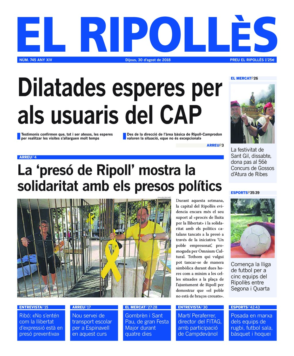 El Ripollès 7457 de setembre de 2018 Cliqueu per veure la portada a major resolució Descarregar PDFDijous, 30 d'agost de 2018.