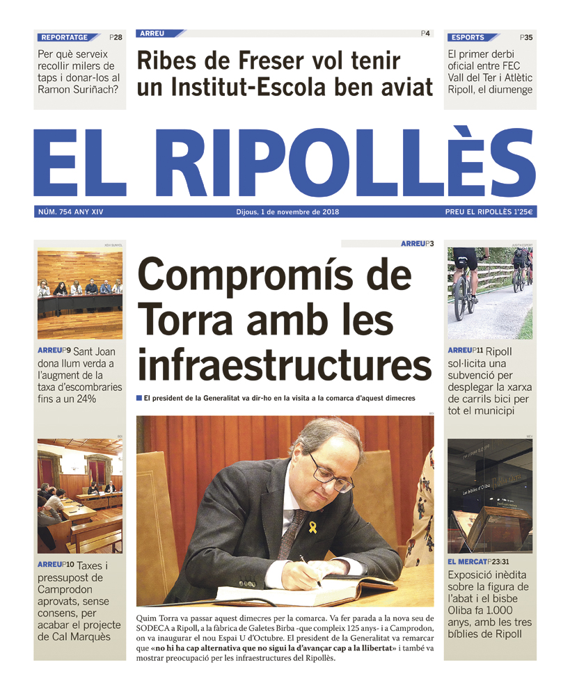 El Ripollès 75413 de novembre de 2018 Cliqueu per veure la portada a major resolució Descarregar PDFDijous, 1 de novembre de 2018.
