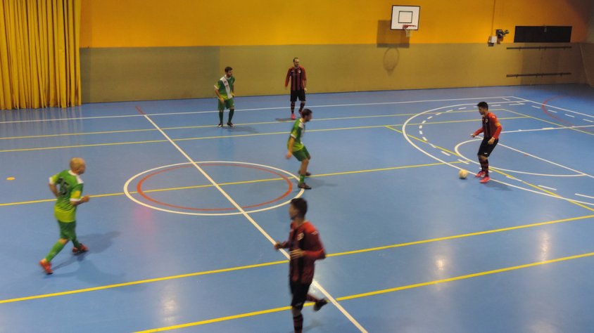 Erena havia igualat al minut 6 el gol inicial d'Ernesto pel Futsal Dante. Durant el primer temps, encara hi va haver temps per veure un altre gol. El primer dels tres que va marcar Sergio pels visitants, després d'una bona paret al centre del camp, quan faltaven tres minuts per la mitja part. Les ocasions van sobrevolar les dues àrees i el partit va tenir un ritme molt elevat.